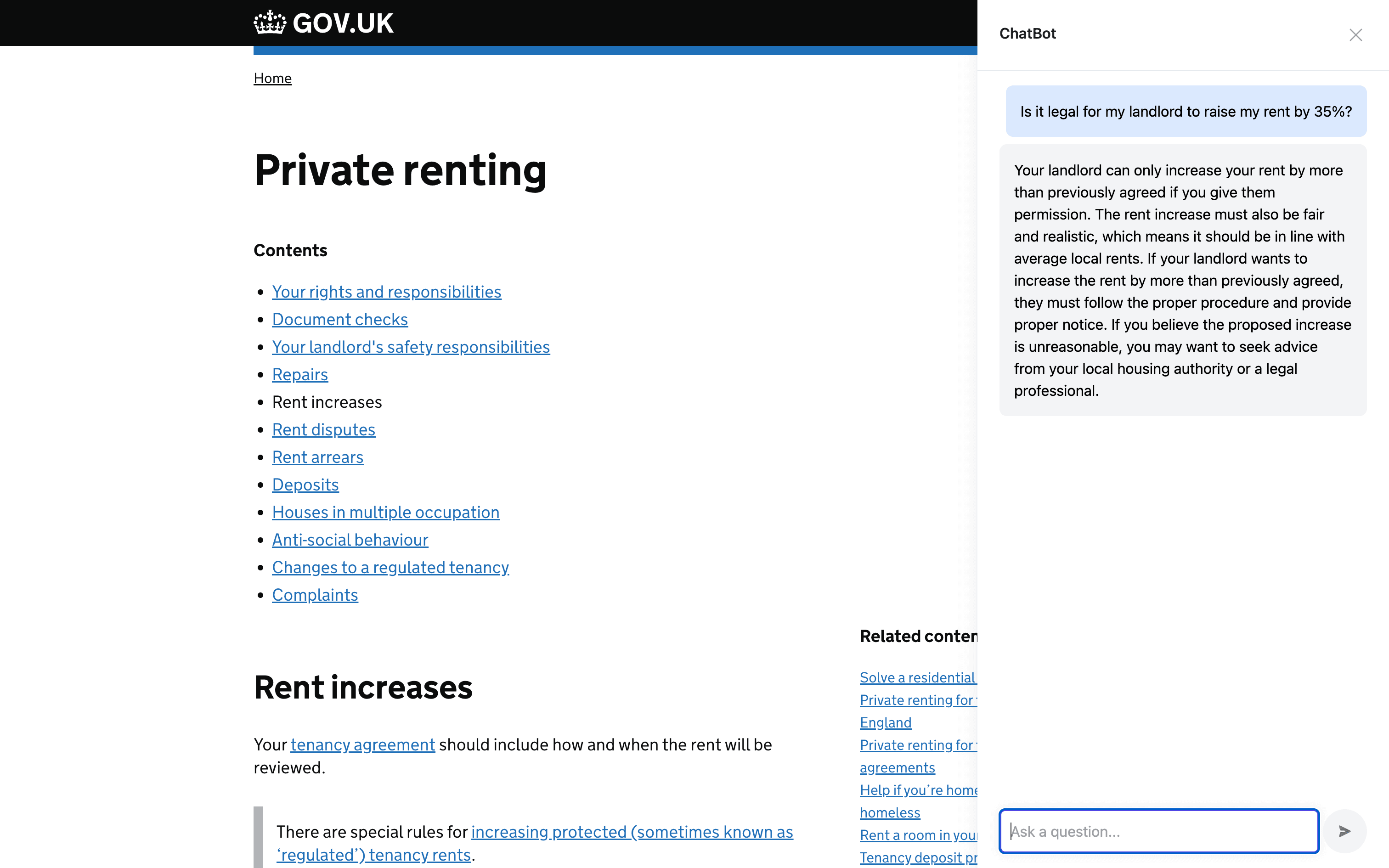 - Do people want to engage with an AI chatbot in a gov.uk context e.g. when seeking advice on rental disputes?